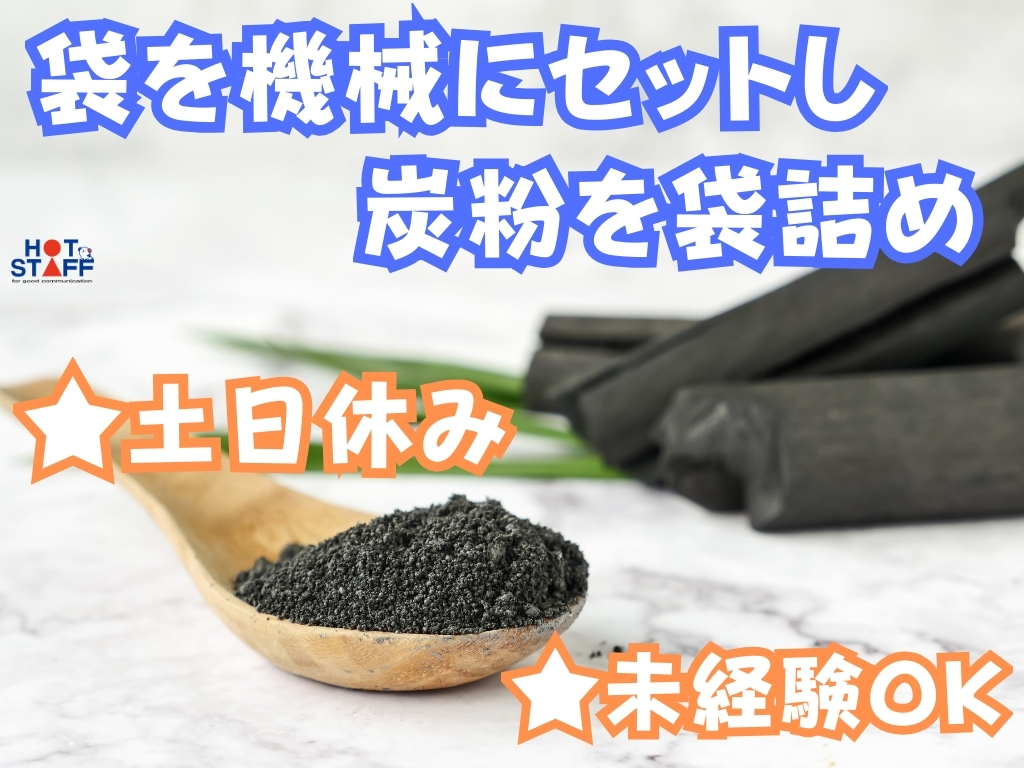 《機械で炭を粉状にして袋詰め♪》未経験OK/土日休み/長期連休あり/残業なし
