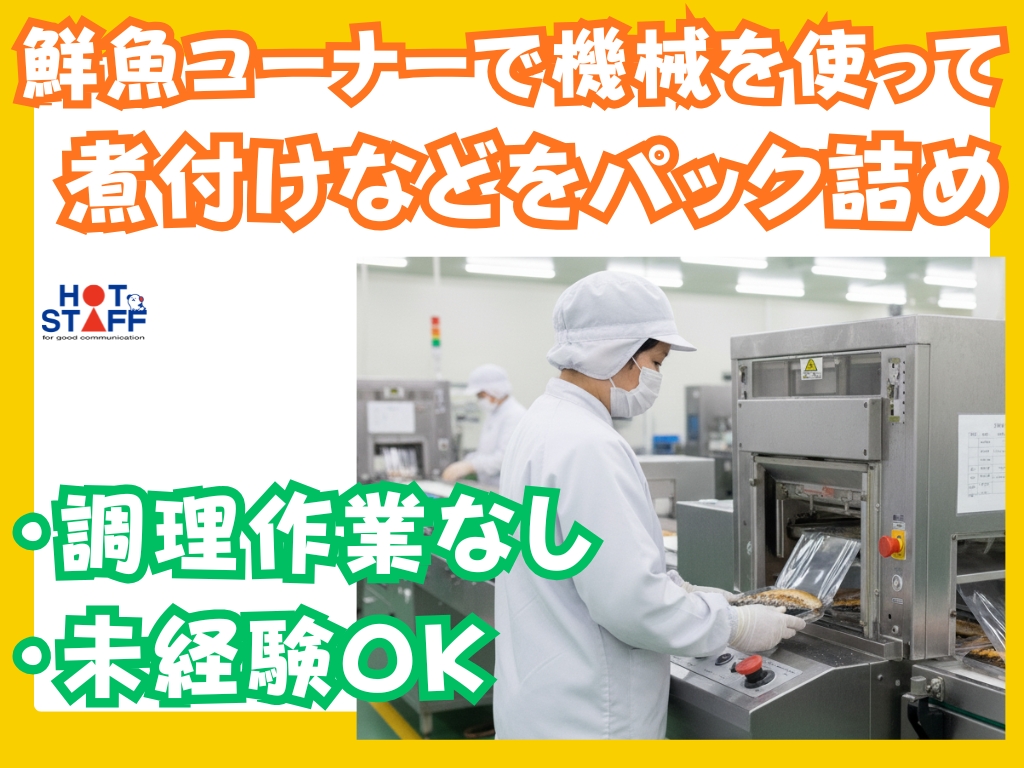 《鮮魚コーナーで機械を使ってお魚料理をパック詰め♪》調理作業なし/未経験OK/軽作業/希望休の相談◎