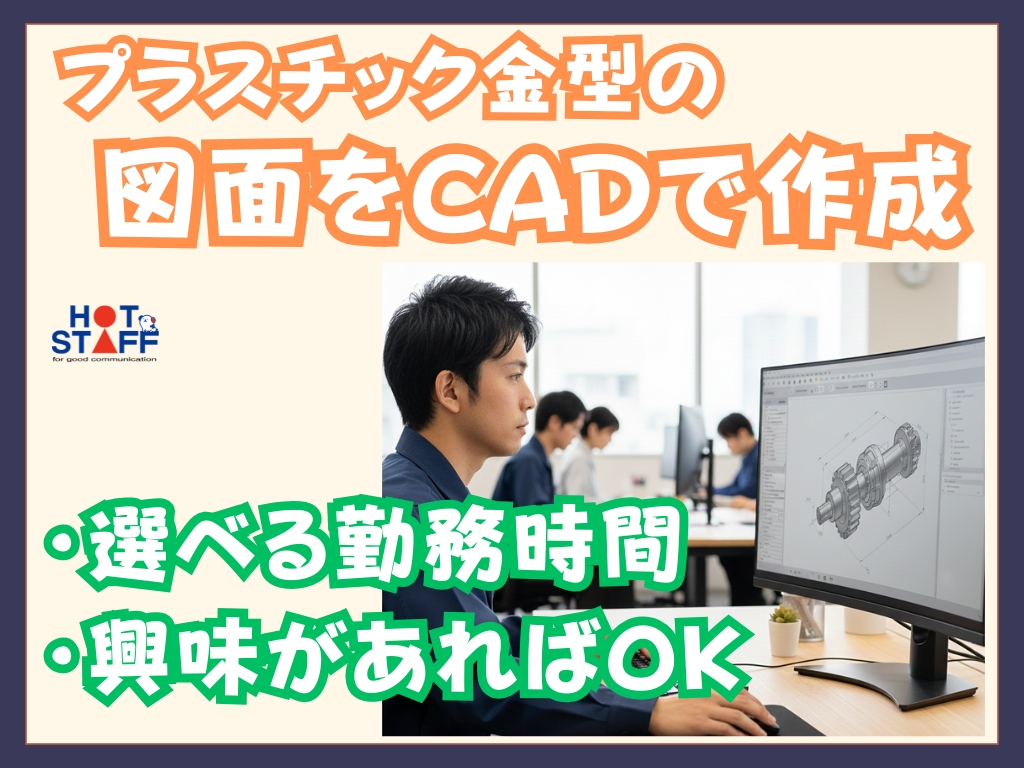《CADで車部品の金型などを図面作成♪》未経験OK/選べる勤務時間/興味があれば◎/週3~5勤務