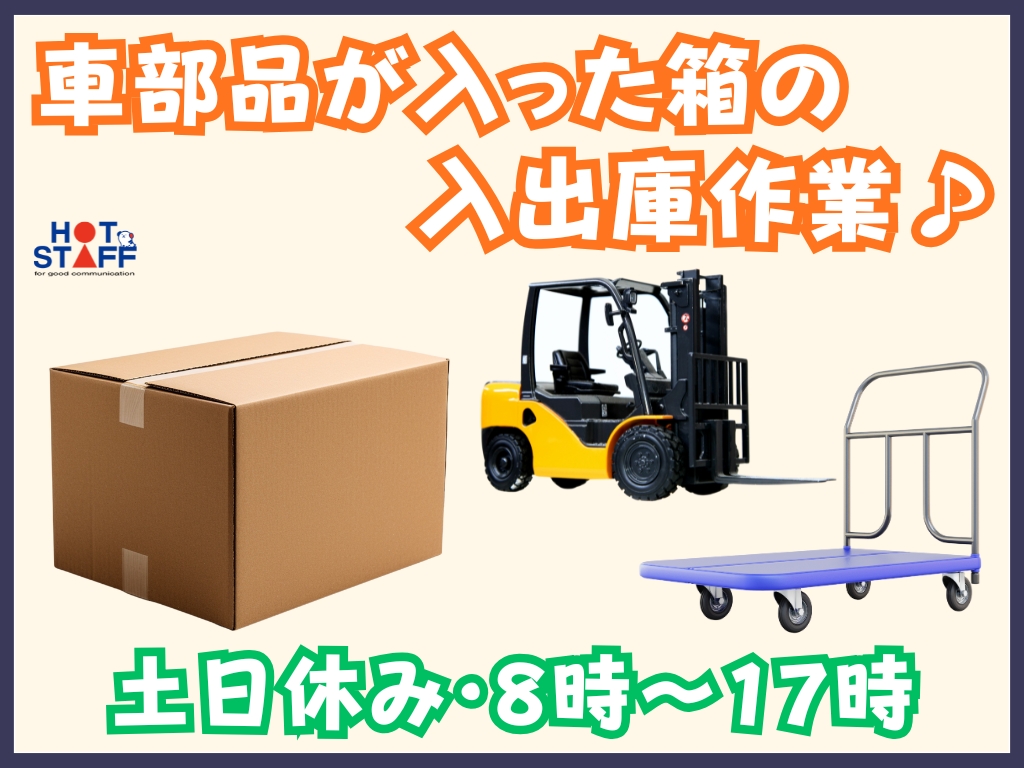《ネジなどの車部品が入った段ボールの入出庫作業♪》リフト作業もあり/土日休み/8時~17時/未経験可
