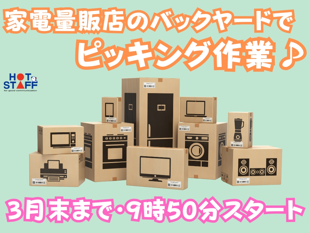 《電気屋さんのバークヤード裏で家電製品のピッキング♪》3月末までの短期/時間帯を決めれる/未経験OK