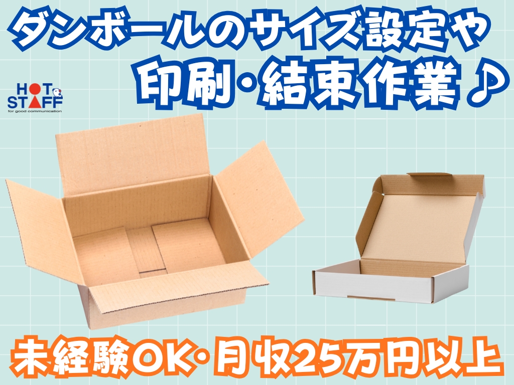 《機械を使ってダンボールのサイズ設定・印刷・結束作業♪》未経験OK/月収25万円以上/希望作業選べる
