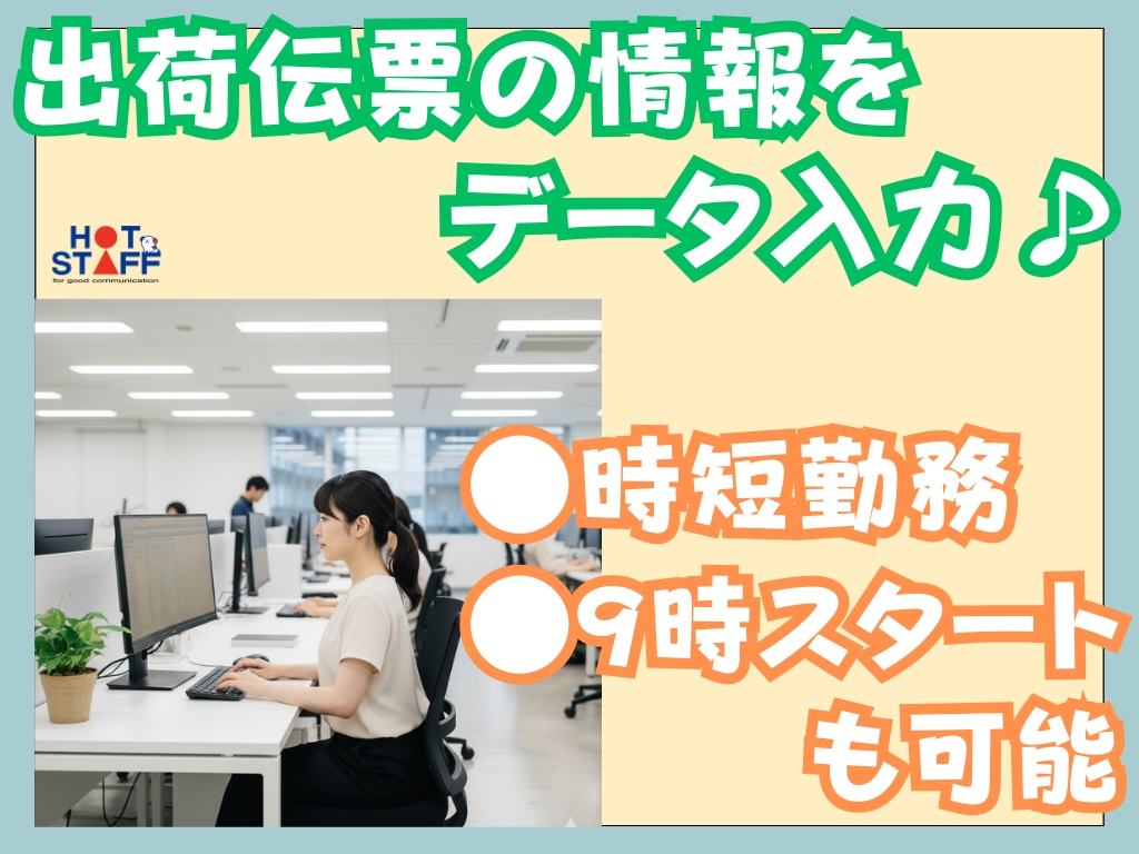 《配送済みの出荷伝票の情報をデータ入力♪》来客・電話対応なし/時短勤務/9時スタートも可/土日祝休み