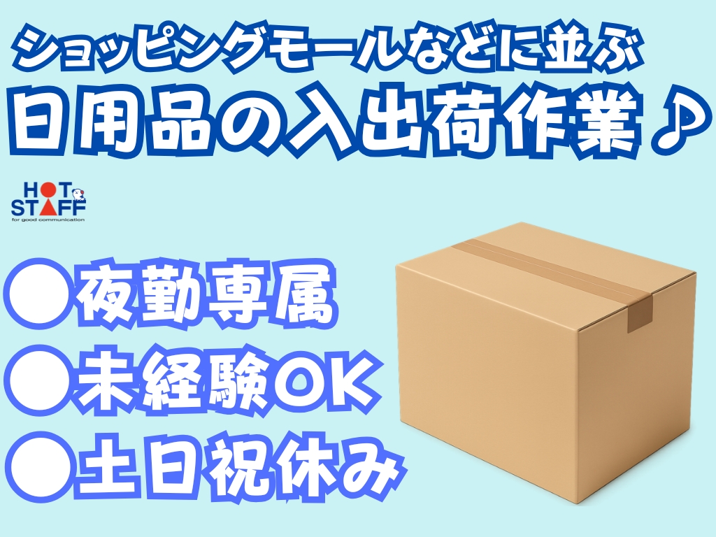 《ショッピングモールなどに並ぶ日用品の入出荷作業♪》夜勤専属/21時~翌6時/未経験OK/土日祝休み