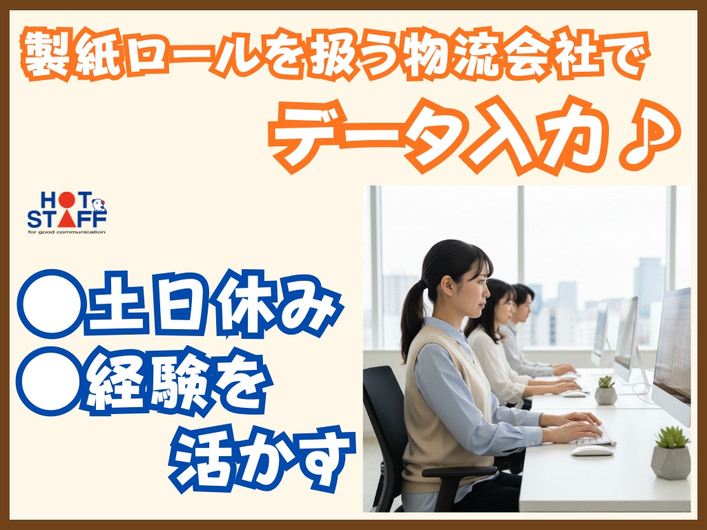 《製紙ロールを扱う物流会社でデータ入力♪》事務経験を活かす/土日休み/ネイルOK/9時~17時15分