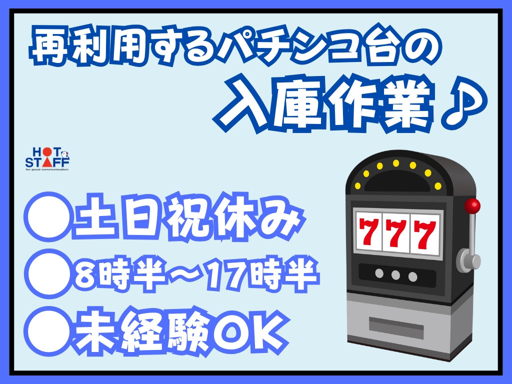 《リサイクルするパチンコ台の入庫作業》未経験OK/土日祝休み/8時半~17時半/単純作業/無料P完備
