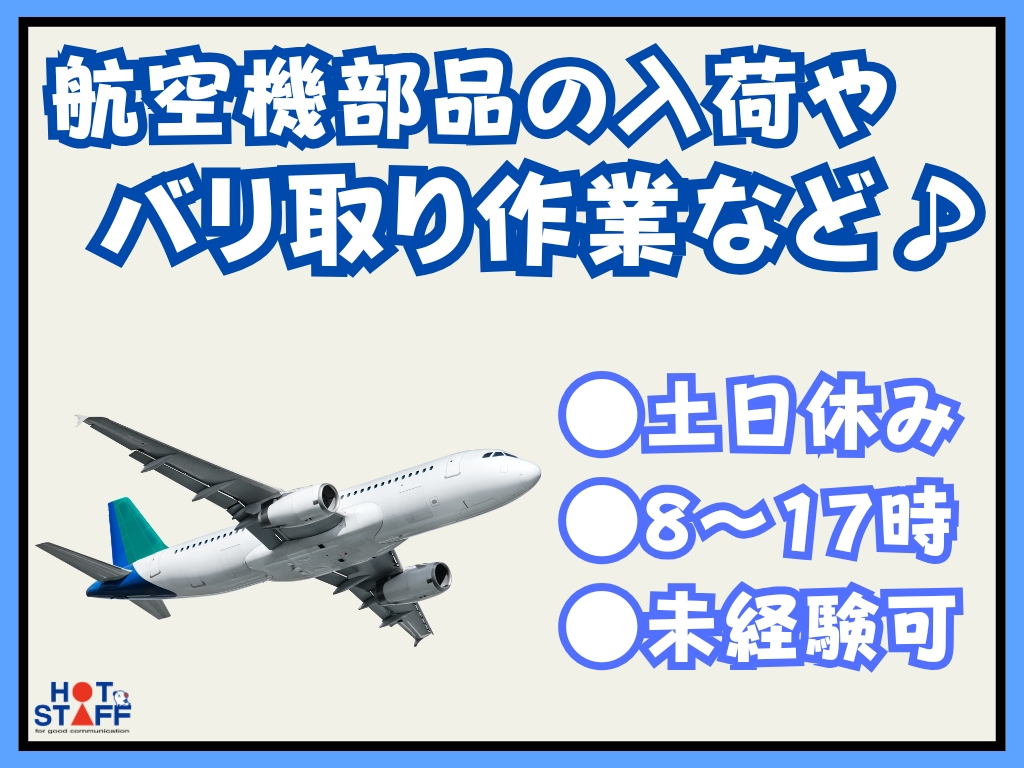 《航空機部品の入荷作業や部品のシールを剥がす作業など♪》未経験◎/土日休み/残業なし/8時~17時