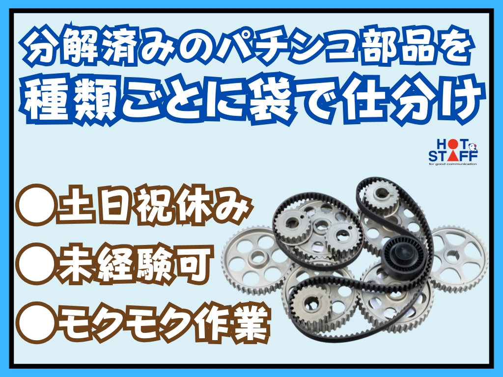 《分解済みのパチンコ部品を種類ごとに袋で仕分け》未経験◎/8時半~17時半/土日祝休み/モクモク作業