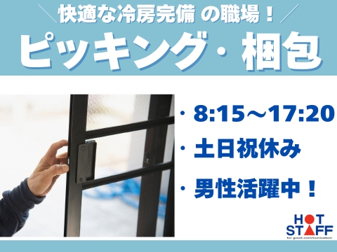 【空調完備×正社員登用の可能性あり◎】軽量アルミパーツのピッキング・梱包作業♪土日祝休み・未経験OK
