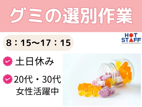 未経験OK・日勤のみ・土日休み!/グミのコーティングにひび割れがないかを選別するお仕事♪