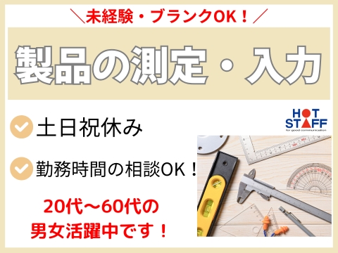 空調完備のきれいな職場☆/日勤のみ・土日祝休み・未経験OK!/製品を測って数値を入力するだけ♪