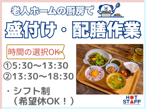 職種老人ホームの厨房で盛付けや配膳スタッフ