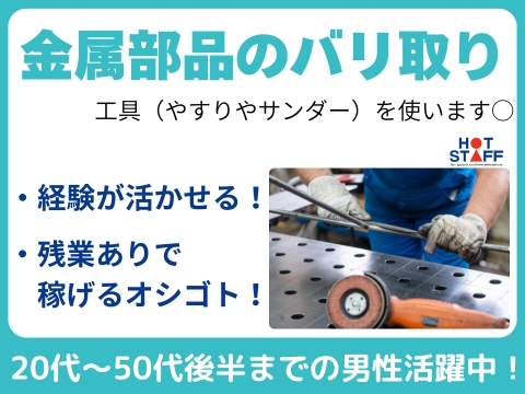 空調完備で安心♪土日休み・長期連休あり・日勤/やすりなどの工具を使って★金属部品のバリ取りスタッフ!