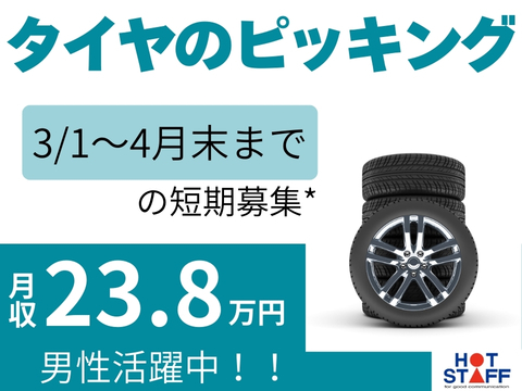 4月末までの短期★月収23万円可能/週休二日制・残業なし/タイヤのピッキング&入出庫作業スタッフ!