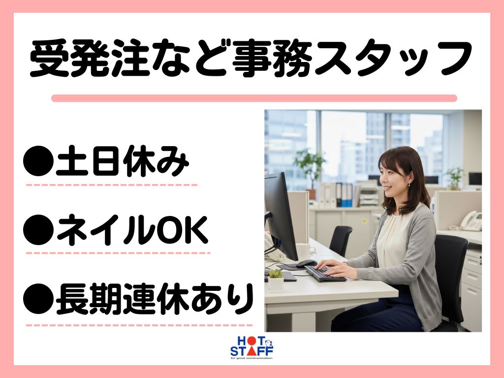 《専用のシステムを使って資料作成や受発注業務》8時~17時/土日休み/駐車場あり/オフィスネイルOK◎