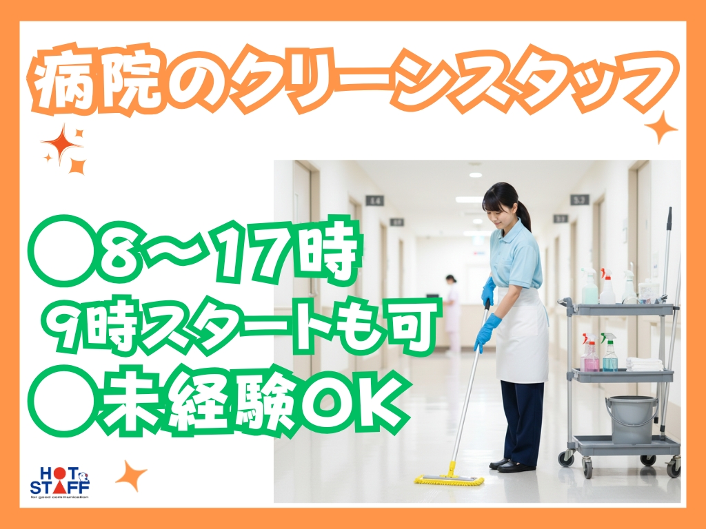 《病院内のフロア清掃スタッフさん♪》未経験OK/8時~17時/9時スタートも可/月木休み/残業なし
