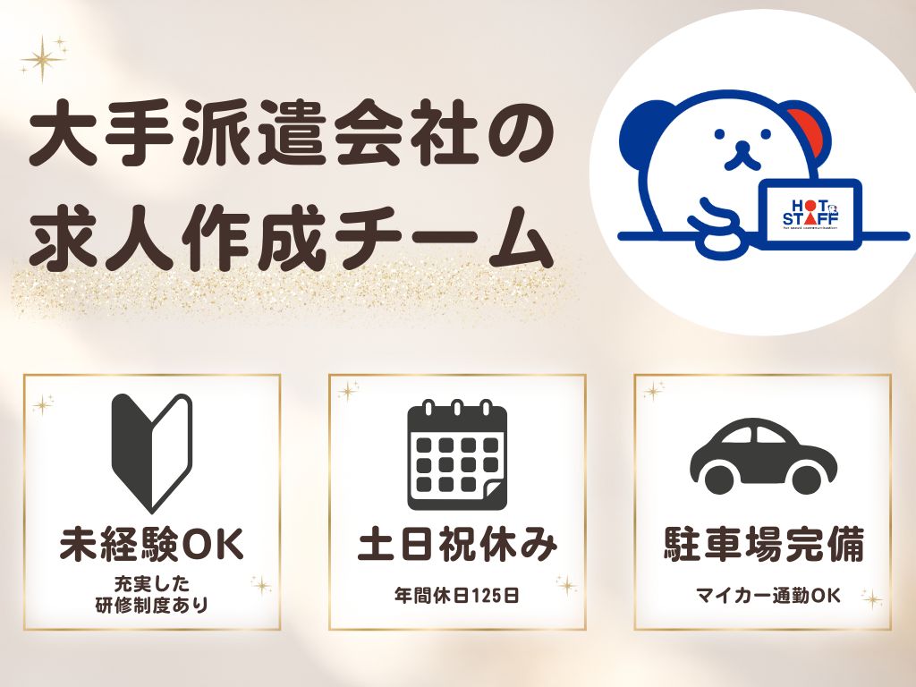《正社員・大手人材派遣会社の求人作成チーム!》土日祝休み・年間休日125日・未経験OK・無料駐車場完備