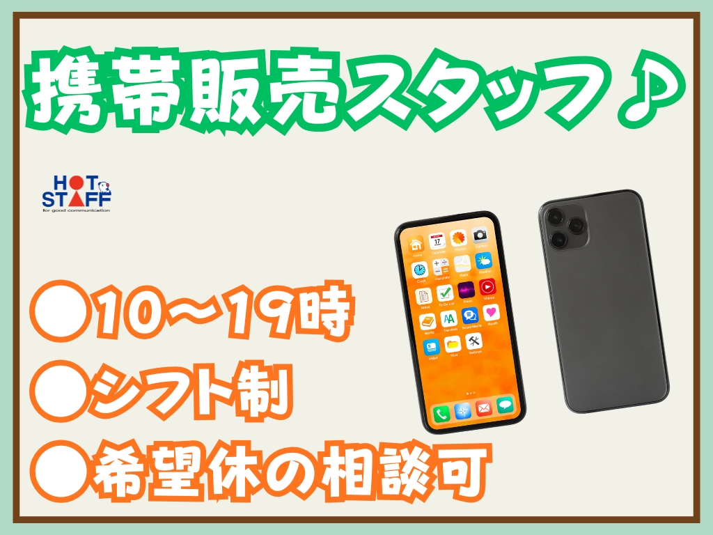《店舗の携帯販売スタッフ♪》未経験◎/希望休の相談OK/月収22万円以上/10時~19時/シフト制
