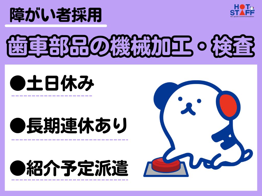 《障がい者採用・歯車部品を機械でカット&顕微鏡で検査》交替勤務/マイカー通勤OK/紹介予定派遣