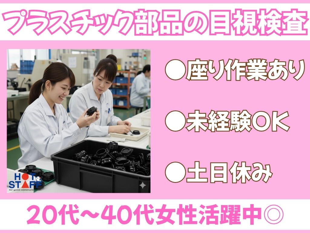 《プラスチック部品にキズがないかチェック》土日休み/座り作業もあり/車通勤OK/未経験者さん歓迎◎
