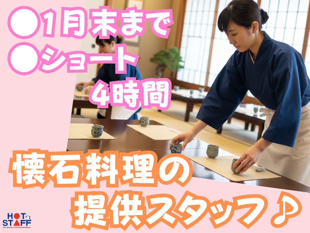 《懐石料理屋でお料理の提供スタッフさん♪》1月末までの短期/ショート4時間/時間帯選べる/残業なし