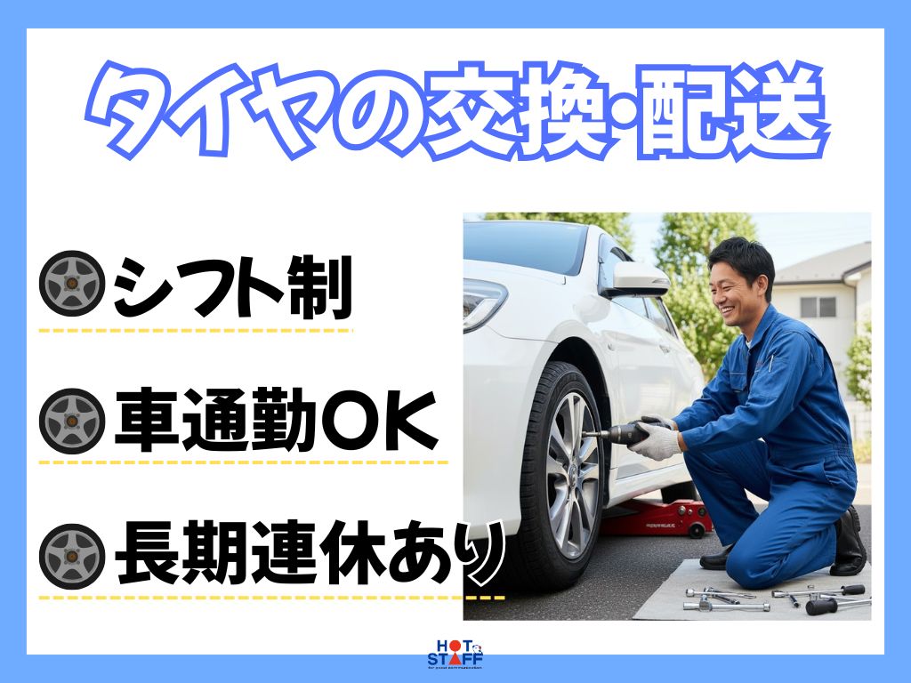 《乗用車のタイヤ交換・AT車でタイヤの配送》9時~17時/シフト制/長期連休あり/マイカー通勤OK