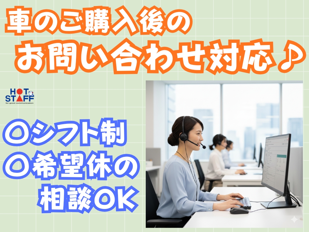 《車のご購入後の問い合わせ対応やHPに掲載する車の動画添付♪》ネイルOK/シフト制/希望休の相談OK
