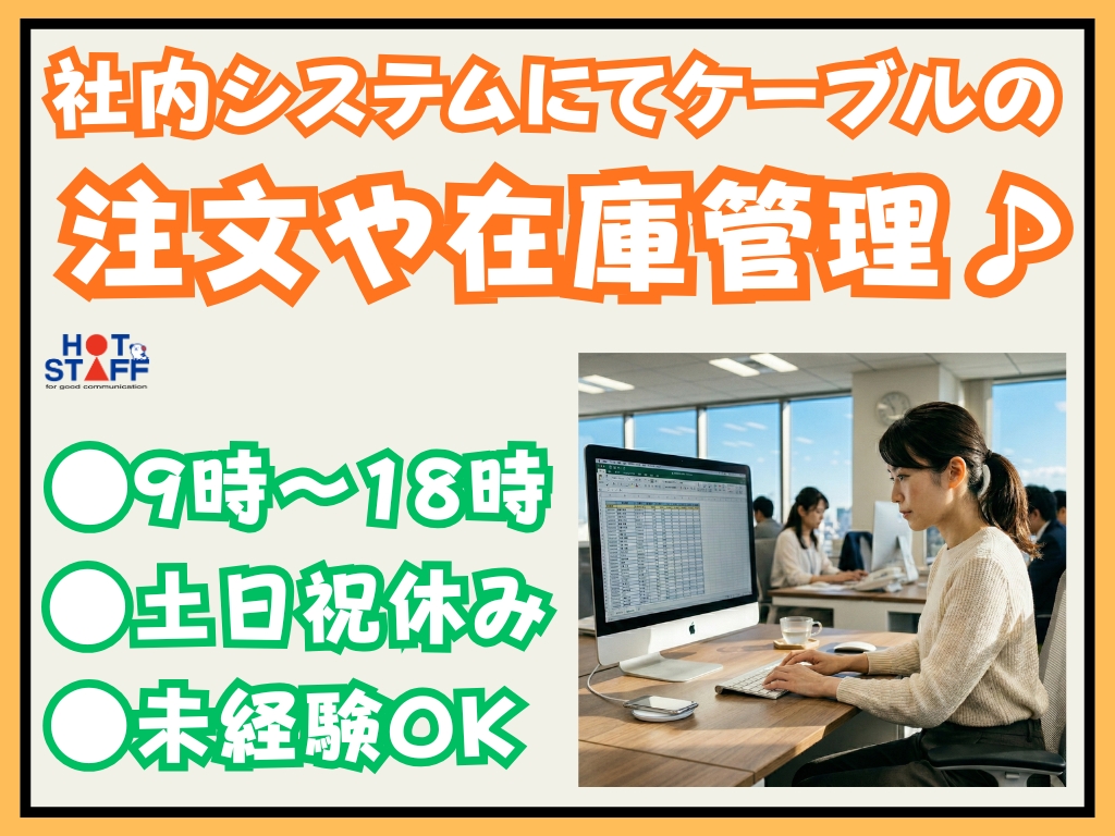 《社内システムにて充電ケーブルの注文や在庫管理♪》未経験◎/9~18時/土日祝休み/月収26万円以上