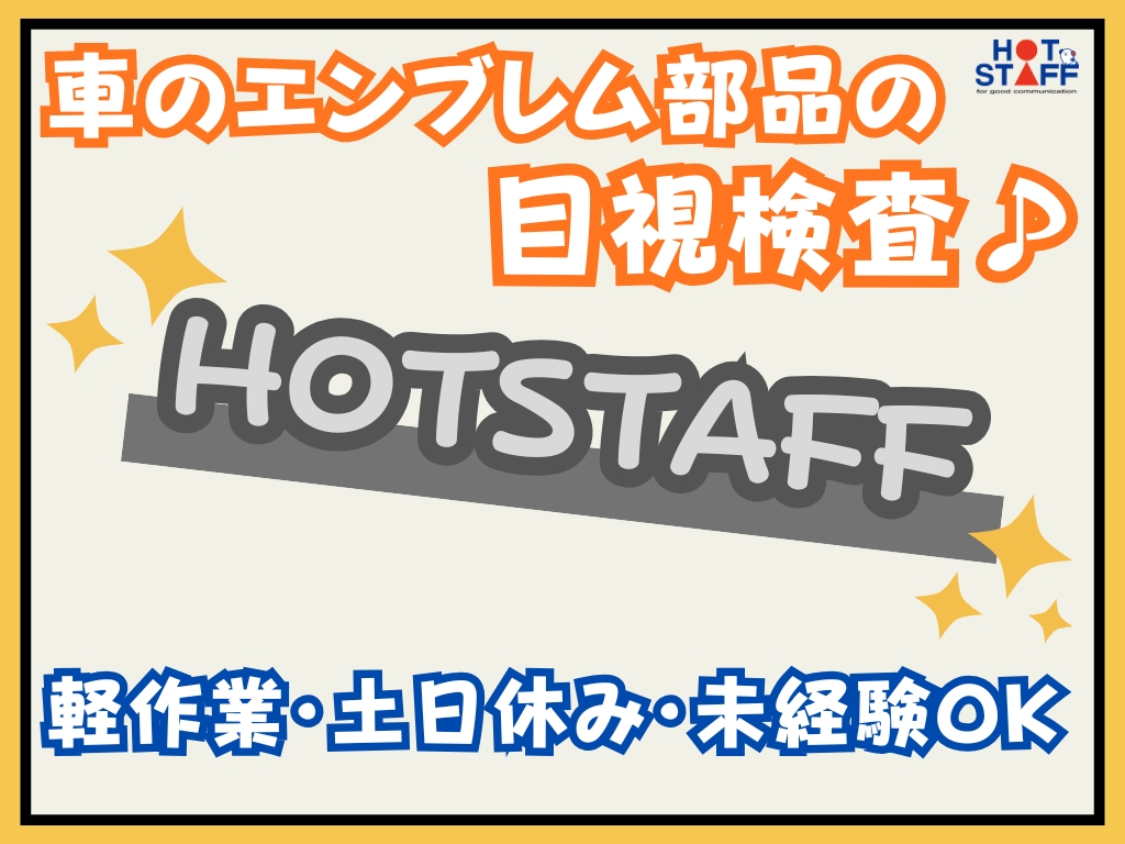 《車のアルファベット型エンブレムの目視検査♪》未経験OK/軽作業/空調完備/土日休み/モクモク作業