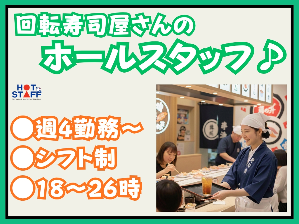 《お寿司屋さんでドリンクなどの注文をヒアリング♪》未経験◎/シフト制/週4勤務からOK/18時~26時