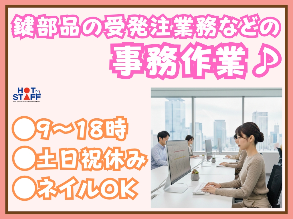《フォーマットで鍵部品の受発注業務や営業成績などを入力》未経験◎/9~18時/ネイルOK/土日祝休み