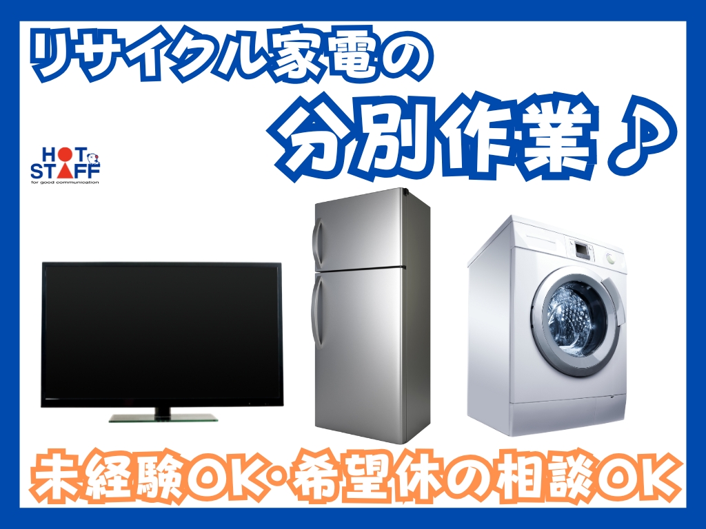 《リサイクルする家電製品を種類や素材ごとに分別♪》未経験OK/日休み+シフト制/希望休の相談可