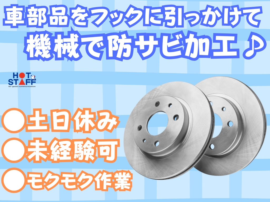 《円盤の車部品をフック引っかけてカンタンな機械操作♪》未経験OK/土日休み/残業なし/モクモク作業
