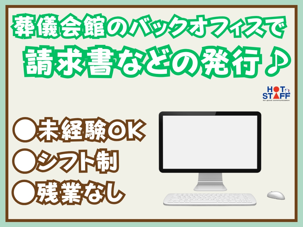 《葬儀会館のバックオフィスで請求書の発行や備品発注♪》未経験◎/月収21万円以上/タイピング必須