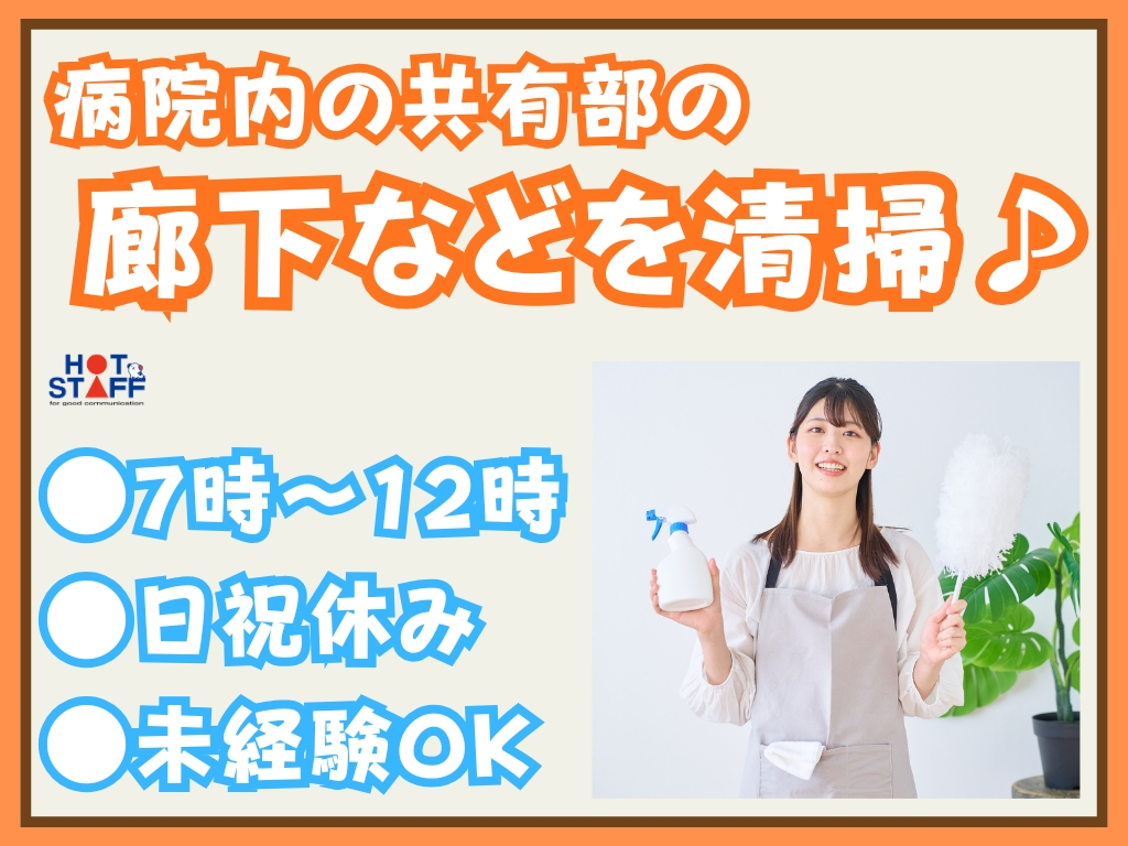 《病院内の共有部の待合室や廊下などを清掃♪》未経験◎/7時~12時/日祝休み/長期連休あり/残業なし