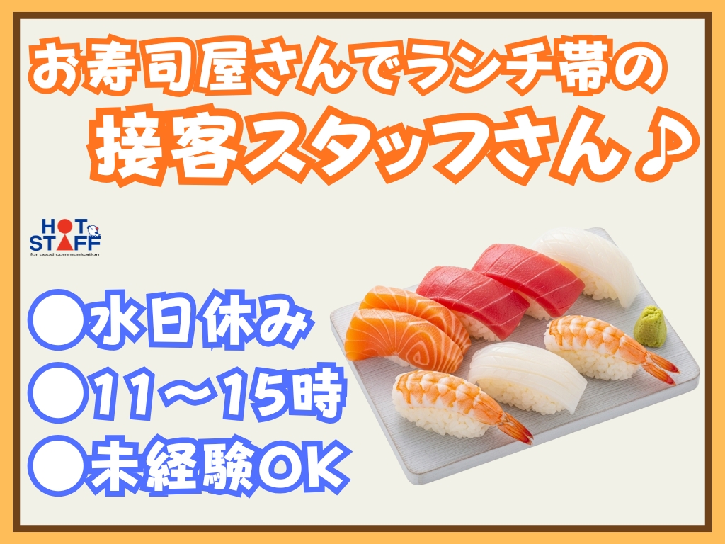 《お寿司屋さんでランチ帯の接客スタッフさん♪》未経験◎/11時~15時/水日休み/月収11万円以上