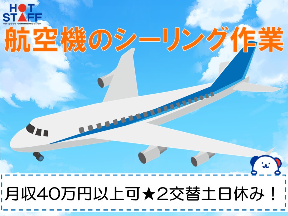 【航空機のシーリング作業】土日休み/2交替勤務/月収40万円以上可/空調完備で快適◎