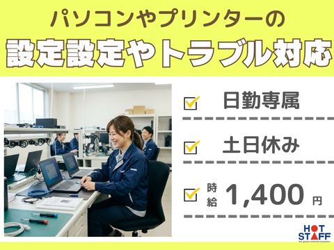 《パソコンやプリンターの設定やトラブル対応スタッフ》日勤専属/PCに詳しくなくてもOK/座り作業あり