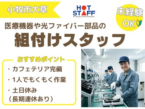 《医療機器や光ファイバー部品の組立スタッフ》綺麗な職場/隔週月曜日は昼食無料/長期連休あり/土日休み