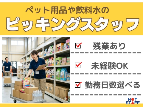 《ペット用品や飲料水を棚から集めてくるだけ》勤務日数が選べる/曜日固定またはシフト休みOK/残業あり
