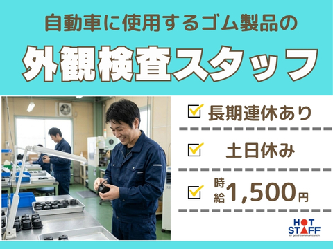 《ゴム製品のバリ取り・検査スタッフ》一人でもくもく作業/土日休み/髪色自由/食堂あり/未経験OK