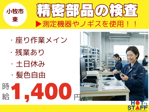 《測定機器やノギスを使って精密部品の検査をするだけ》残業あり/髪色自由/日勤専属/土日休み/座り作業