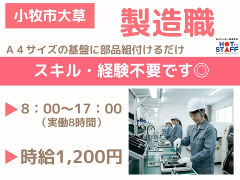 《A4サイズの基盤に部品を差し込むだけ》軽作業/土日休み/17時に帰れる/長期連休あり/未経験OK