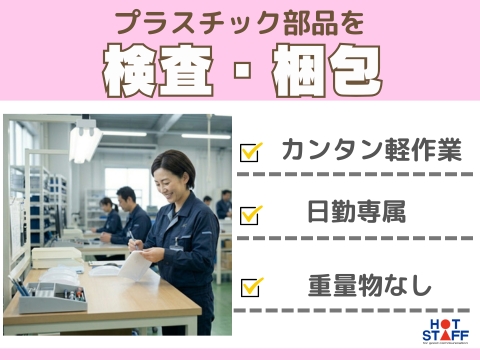 《プラスチック製品のバリ取り・梱包スタッフ》簡単もくもく作業/日勤専属/重量物なし/少人数の職場