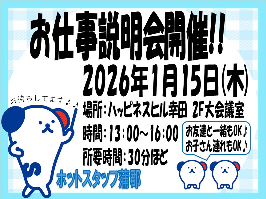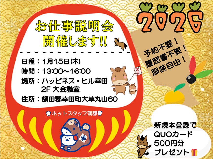 1月15日(木)・お仕事説明会開催!幸田町民会館でお仕事ご紹介!ご予約不要で当日のご来場OK!話を聞いてみたいだけも◎