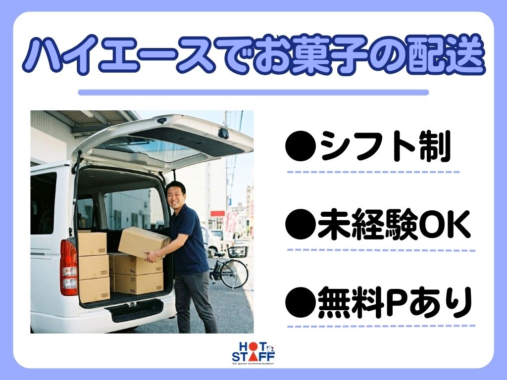《お土産のお菓子などをハイエースで配送》8:30~17:30/シフト制/経験不問/AT限定免許でOK◎