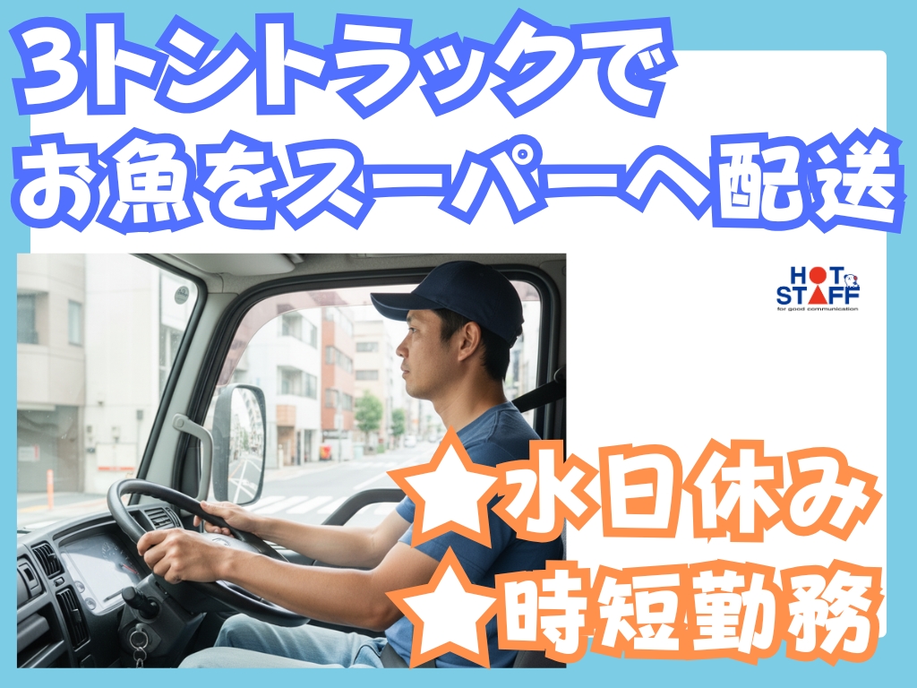 《3トントラックでお魚をスーパーなどへ配送♪》経験を活かせる/水日休み/ショートタイム/急募!