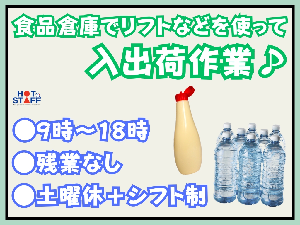 《食品倉庫でリフトなどを使って入出荷作業♪》実務経験なし◎/残業なし/9~18時/土曜休+シフト制