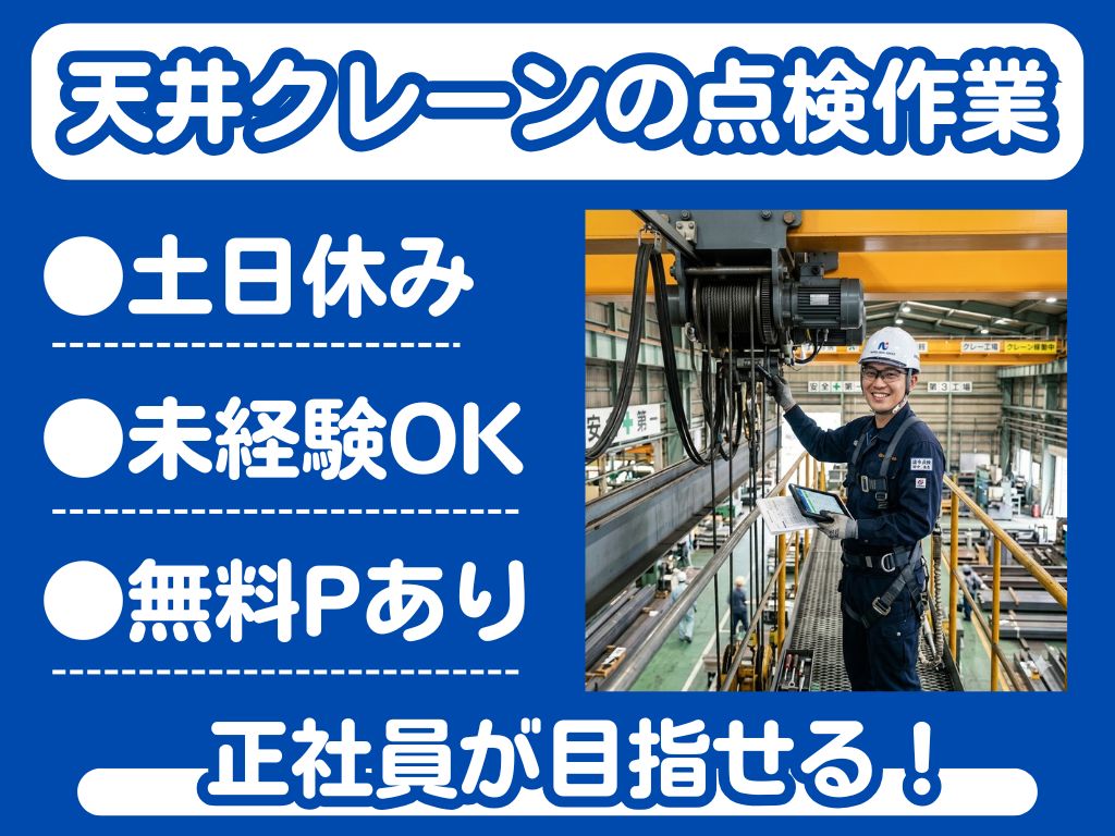 《紹介予定派遣・天井クレーンの点検作業》日勤/年間休日111日/残業ほぼなし/無料駐車場あり/働きながら資格が取れます◎