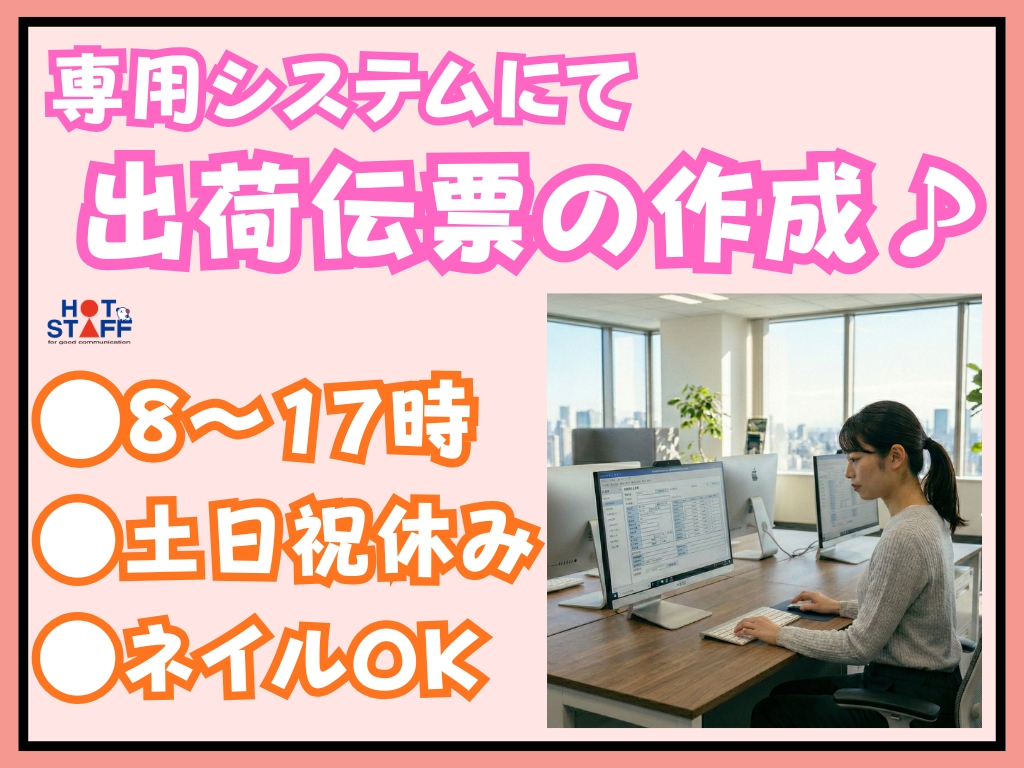 《システムにて出荷伝票の作成やドライバーさんの手配》土日祝休み/8~17時/ネイル◎/綺麗なオフィス